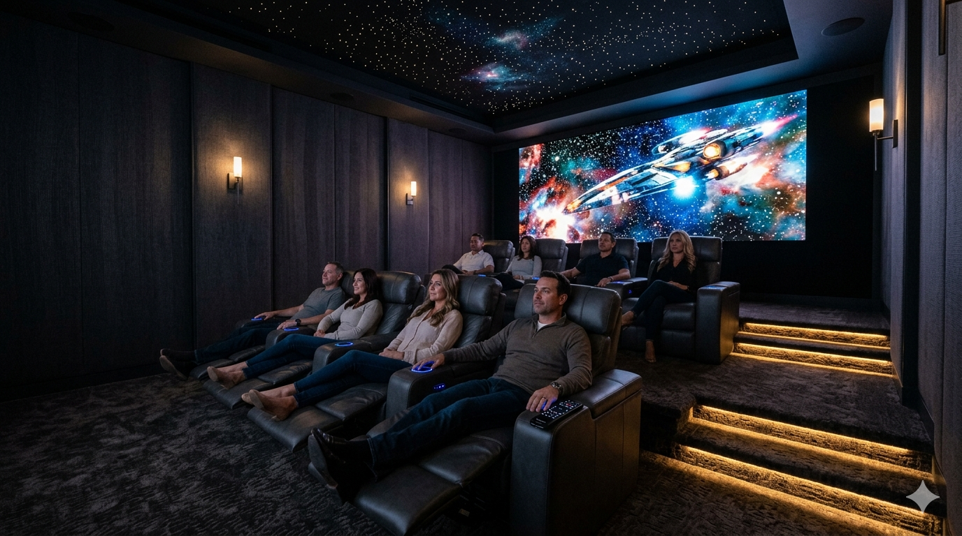 A high-value home theater is nothing without immersive audio. A professional Dolby Atmos 9.1.4 setup involves: